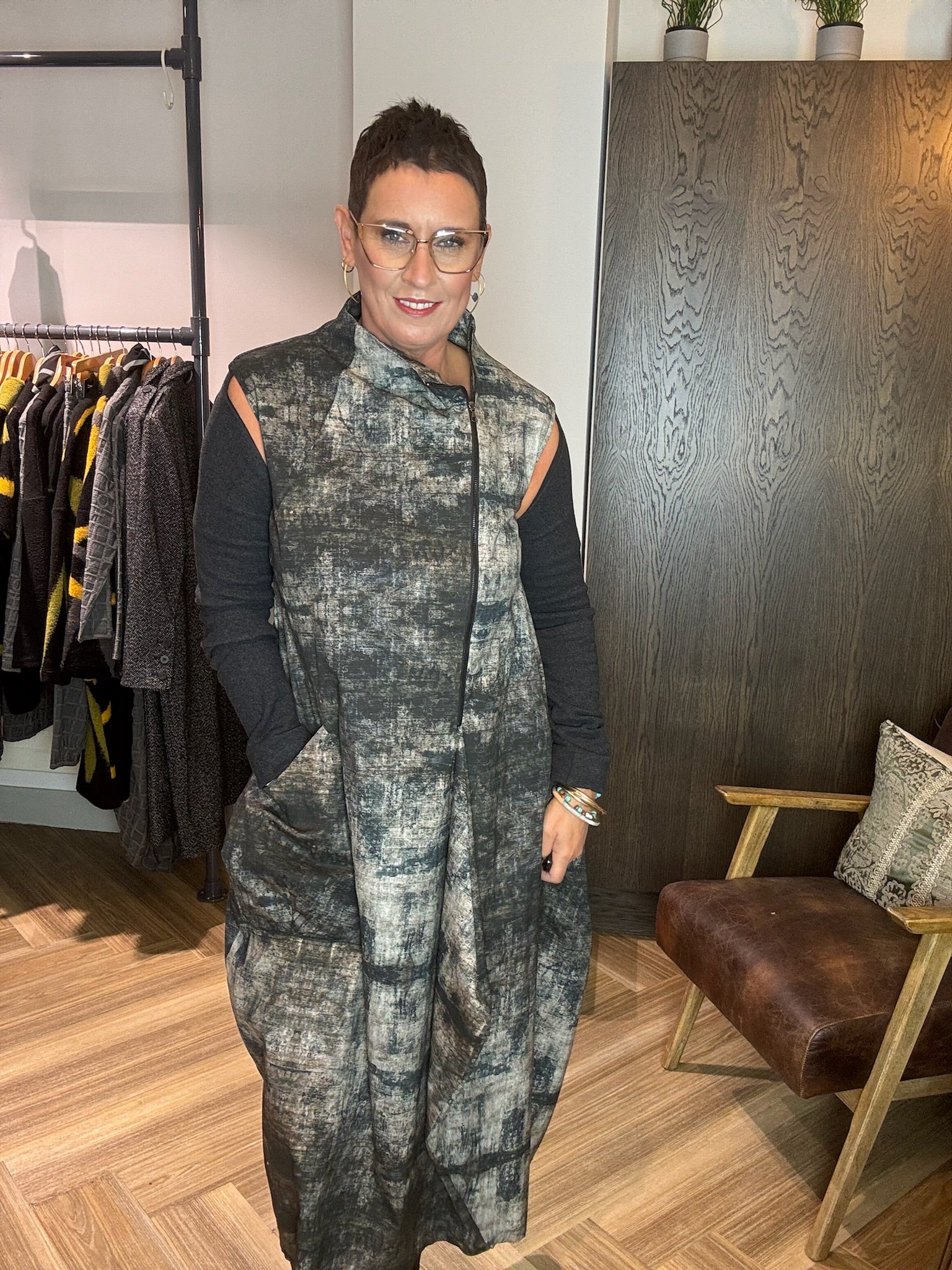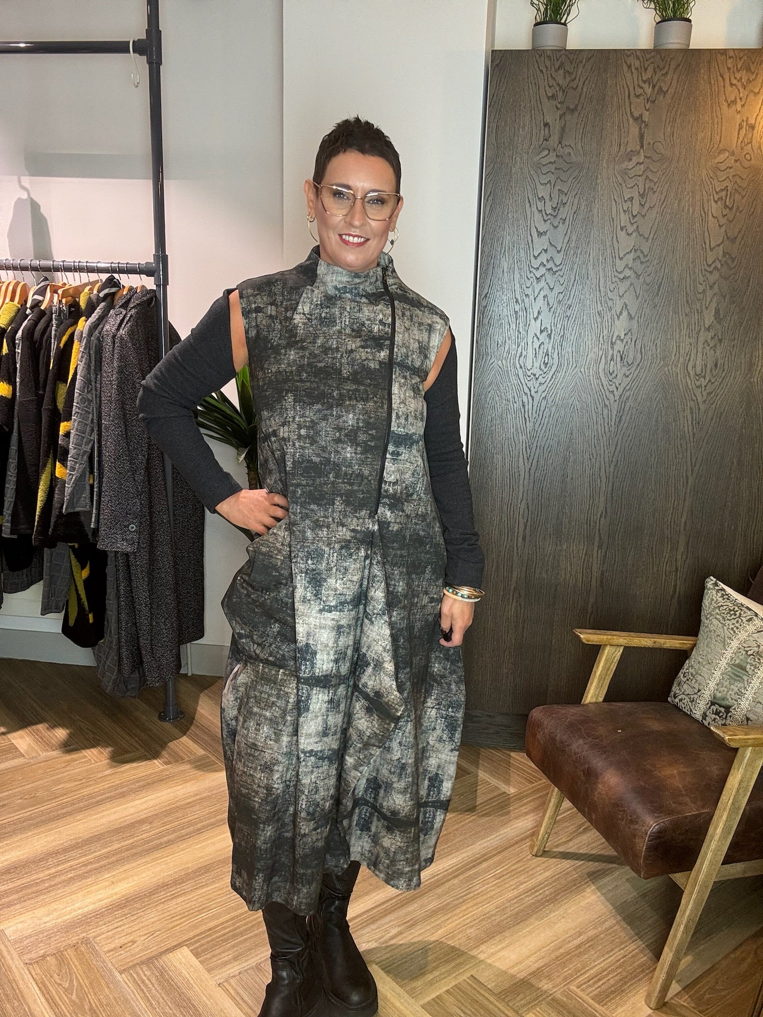 Leatherette Dress with Zip Detail and Lace Effect in Black