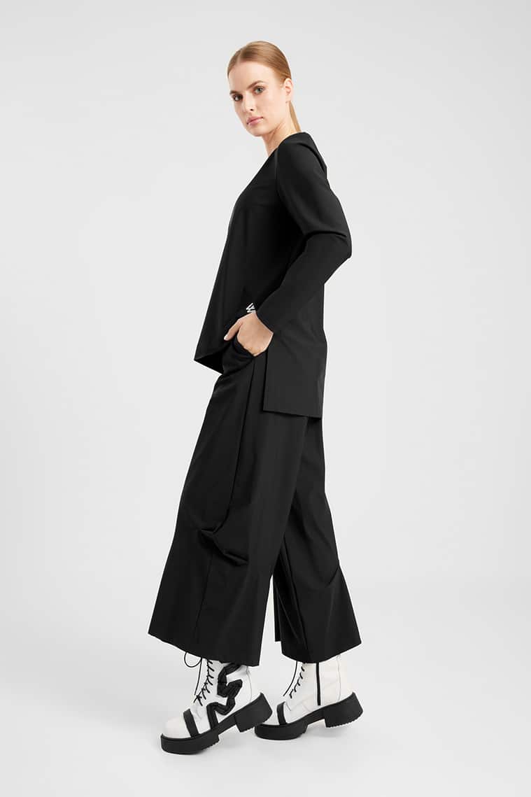 Topstitched Round Shaped Trousers in Black