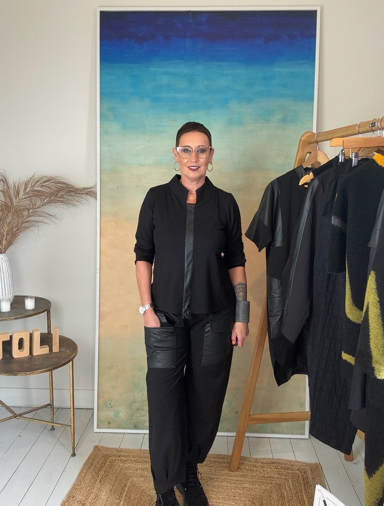 The NAYA funnel neck top is perfectly engineered for the season ahead. The fabric boasts a self coloured print replicating a small wave from shoulder to hem. This genius addition brings both texture and interest to a very versatile piece.