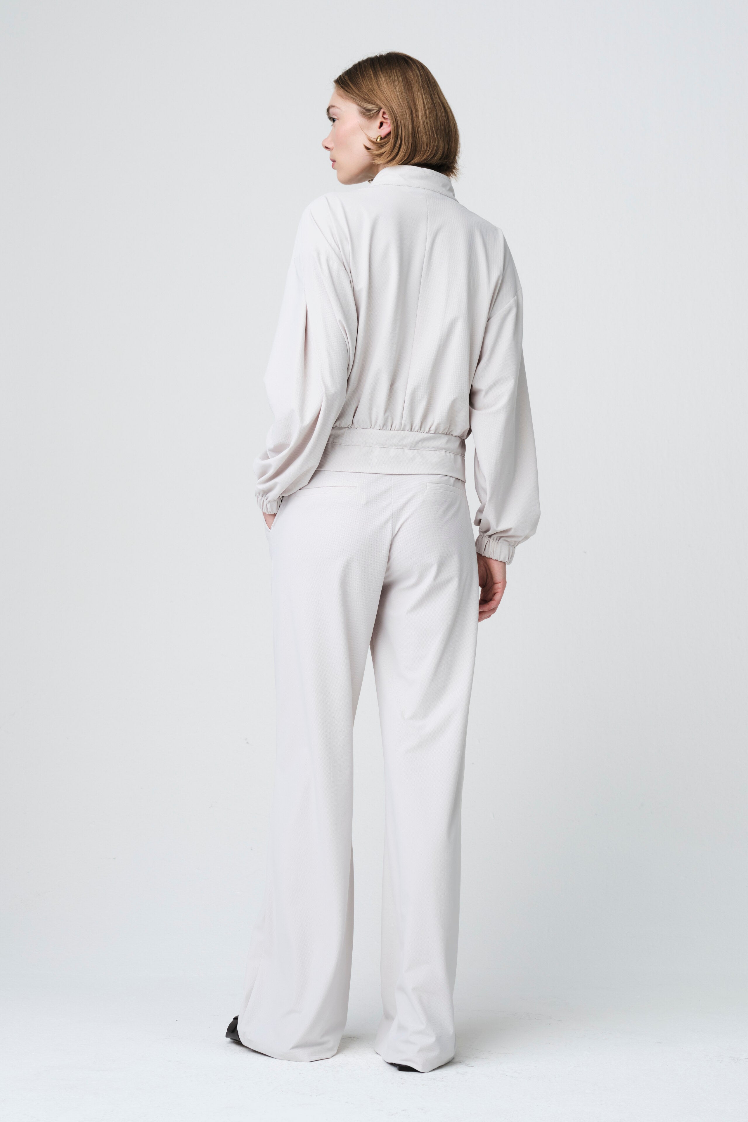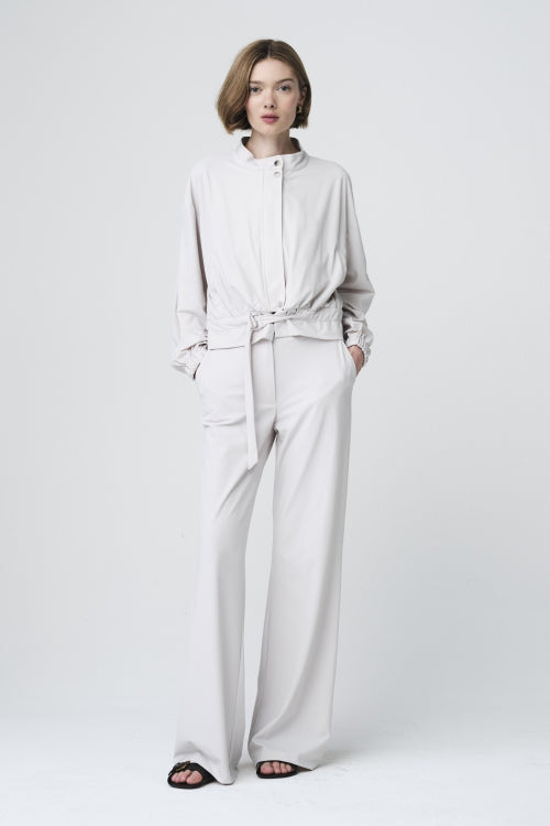 Emiko Taffeta Sleeveless Jacket in Light Grey