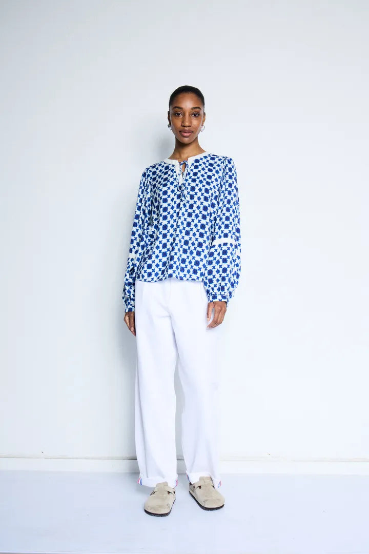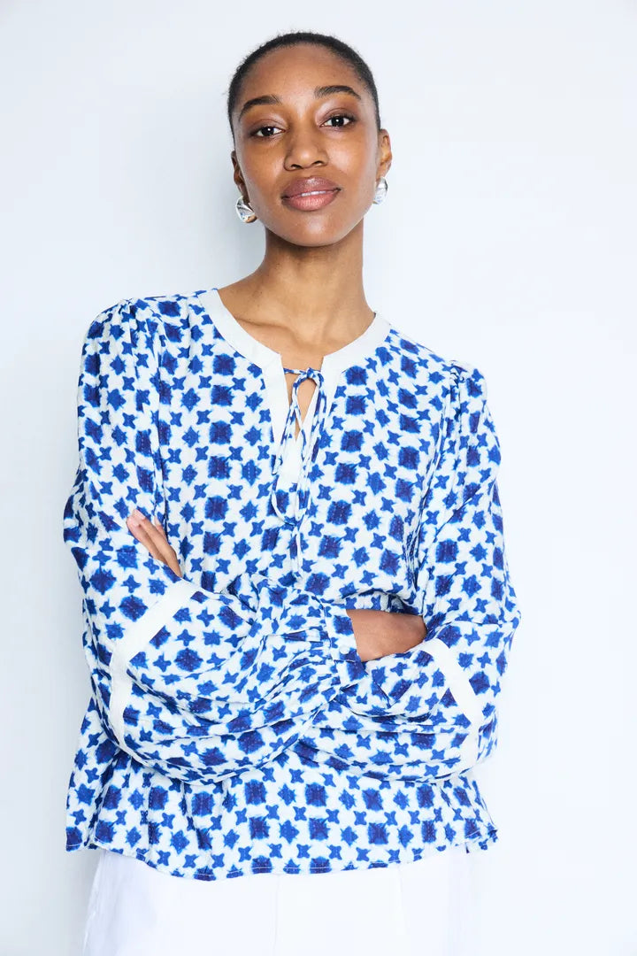 Hizzy Greece Long Sleeve Blouse in Brown/Blue
