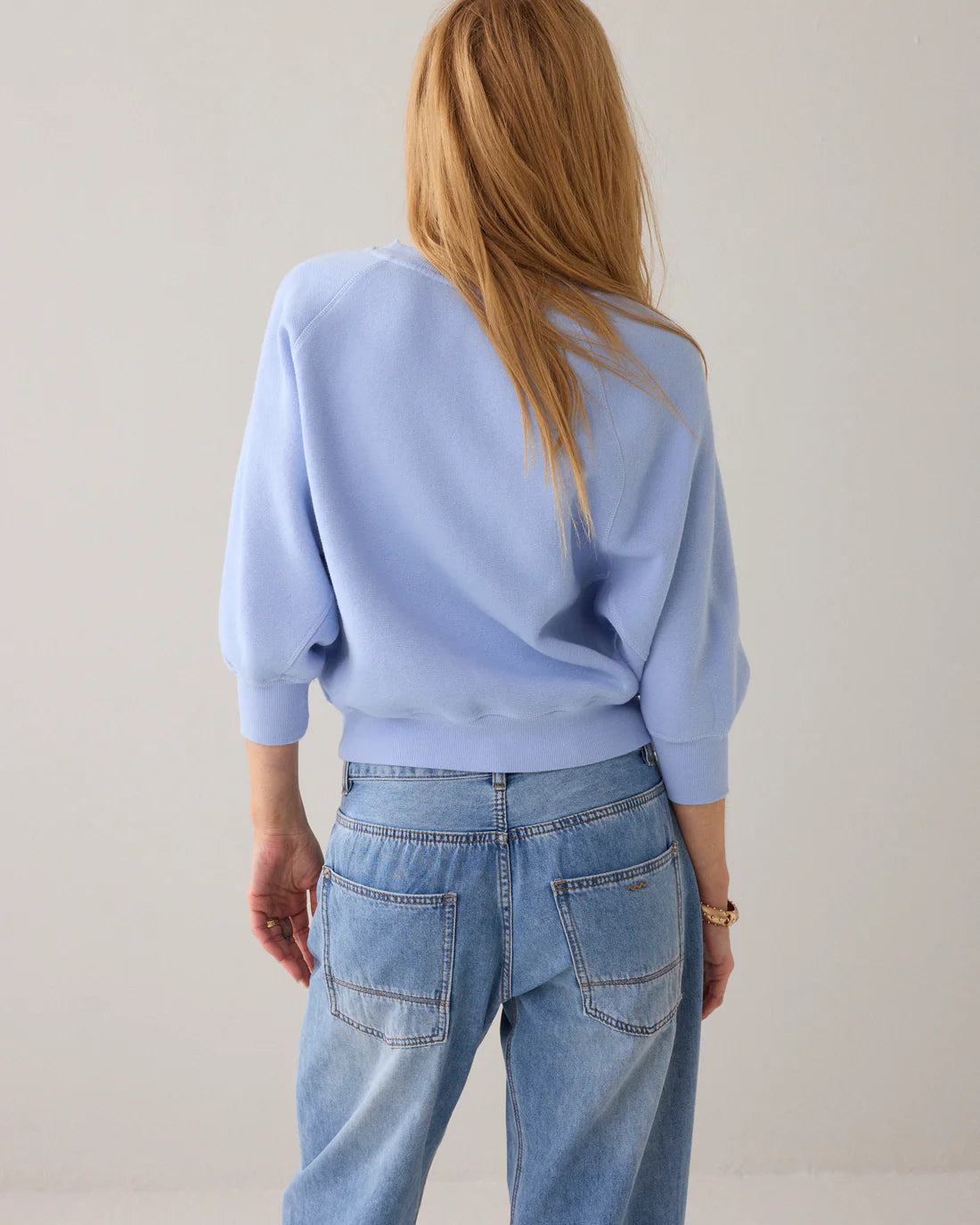 Loose Fit Bat Sleeve Jumoer in Soft Blue