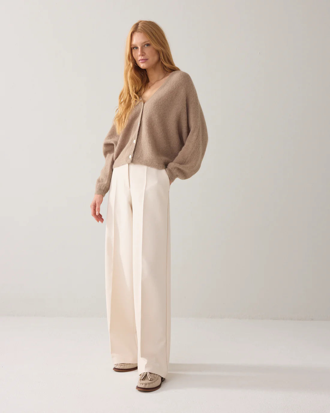 Flowy High-Waisted Trousers in Beige