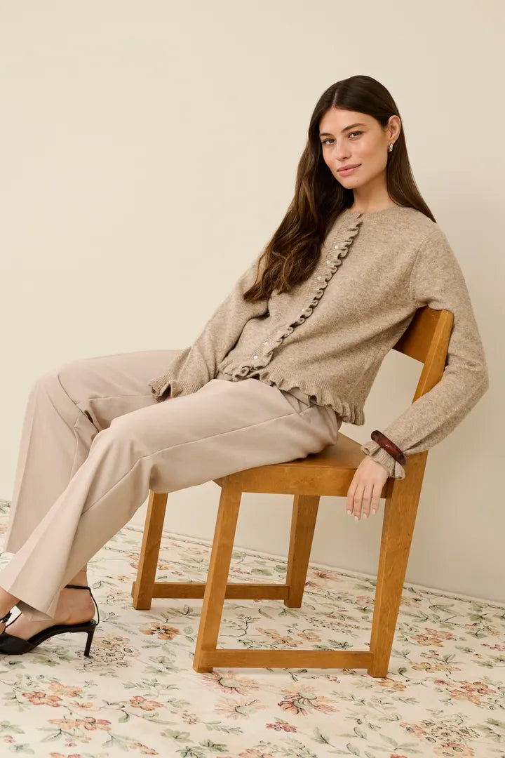 Wide Leg Trouser with Contrast Panel in Black/Sand