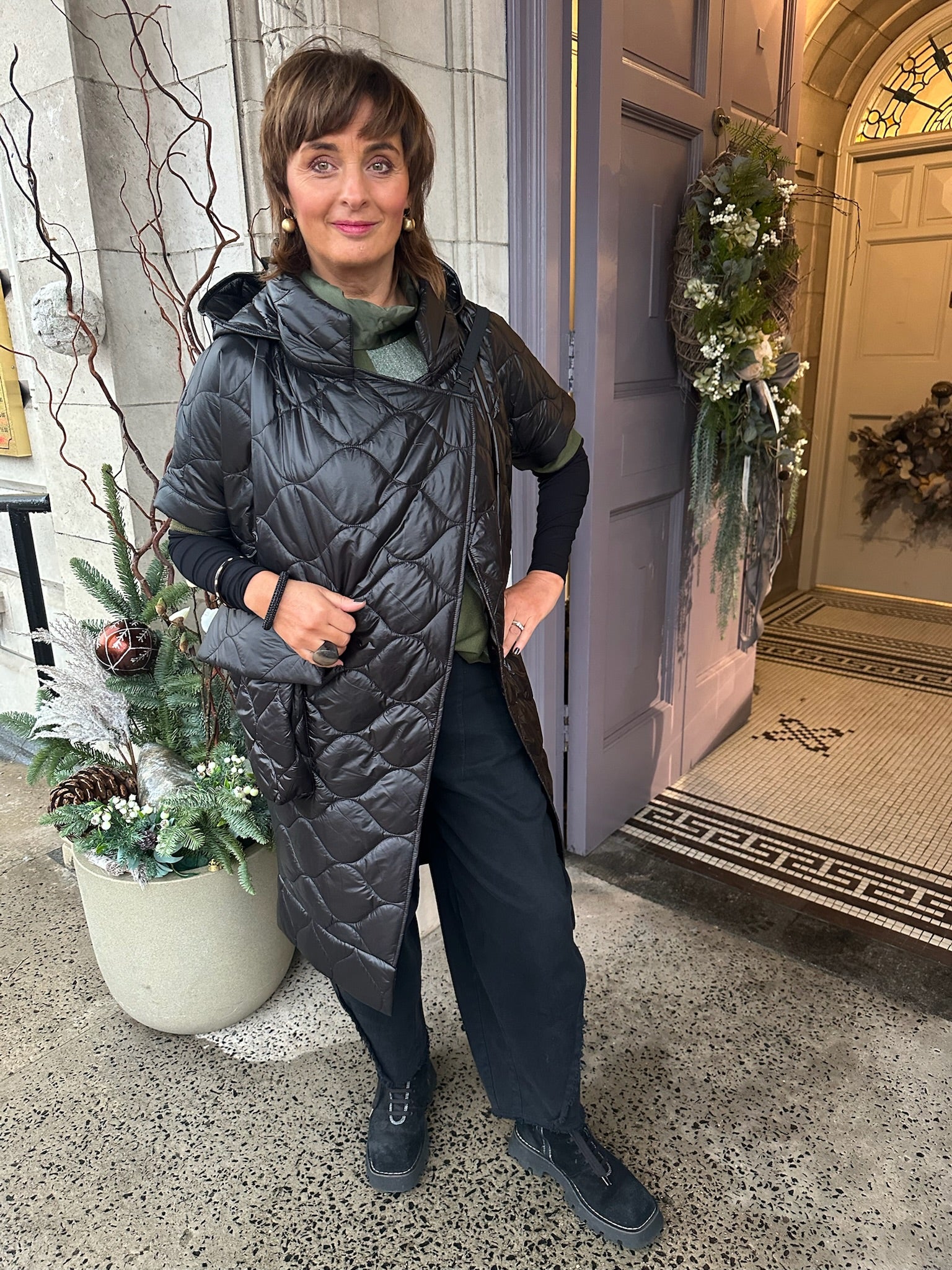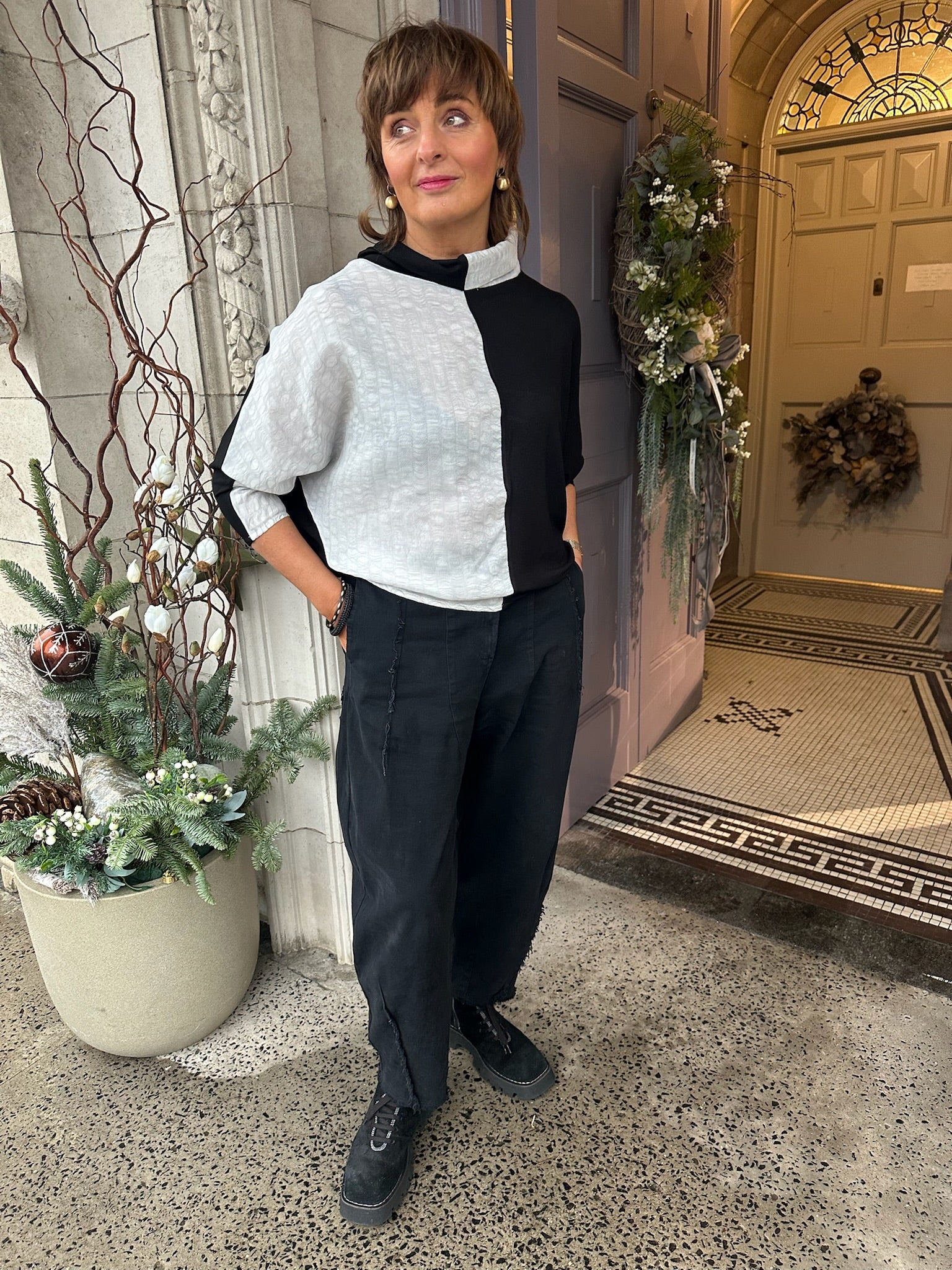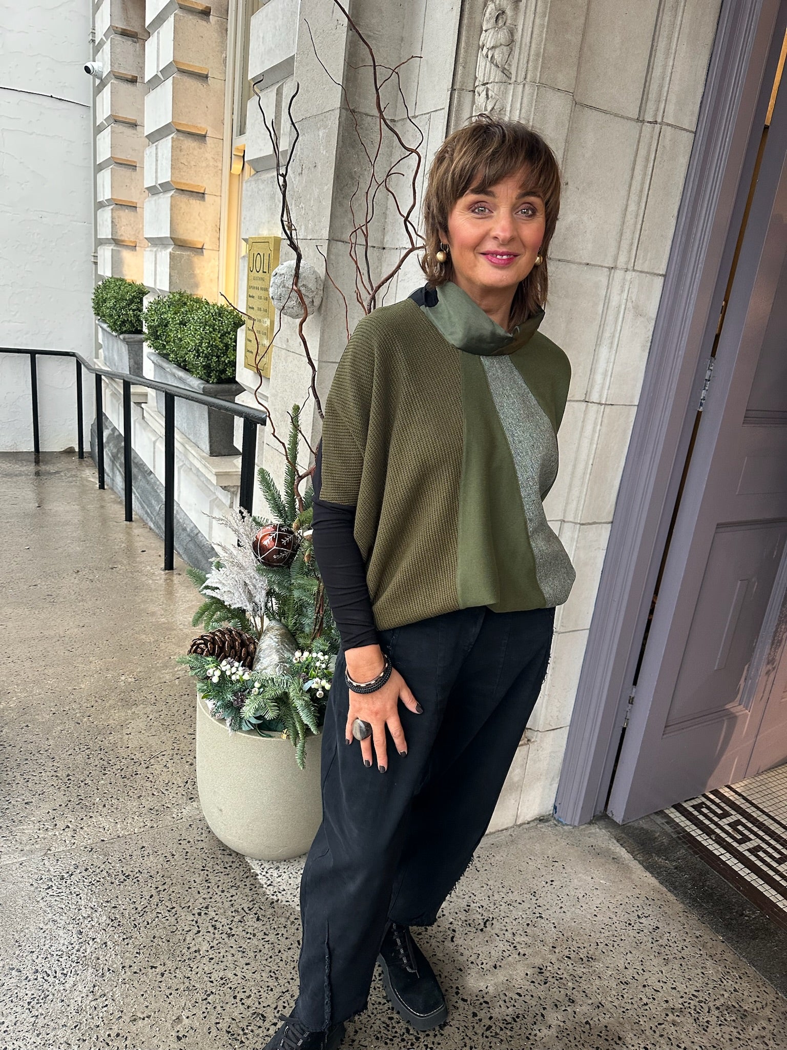 Contrast Panel Long-Sleeve Top in Taupe/Black