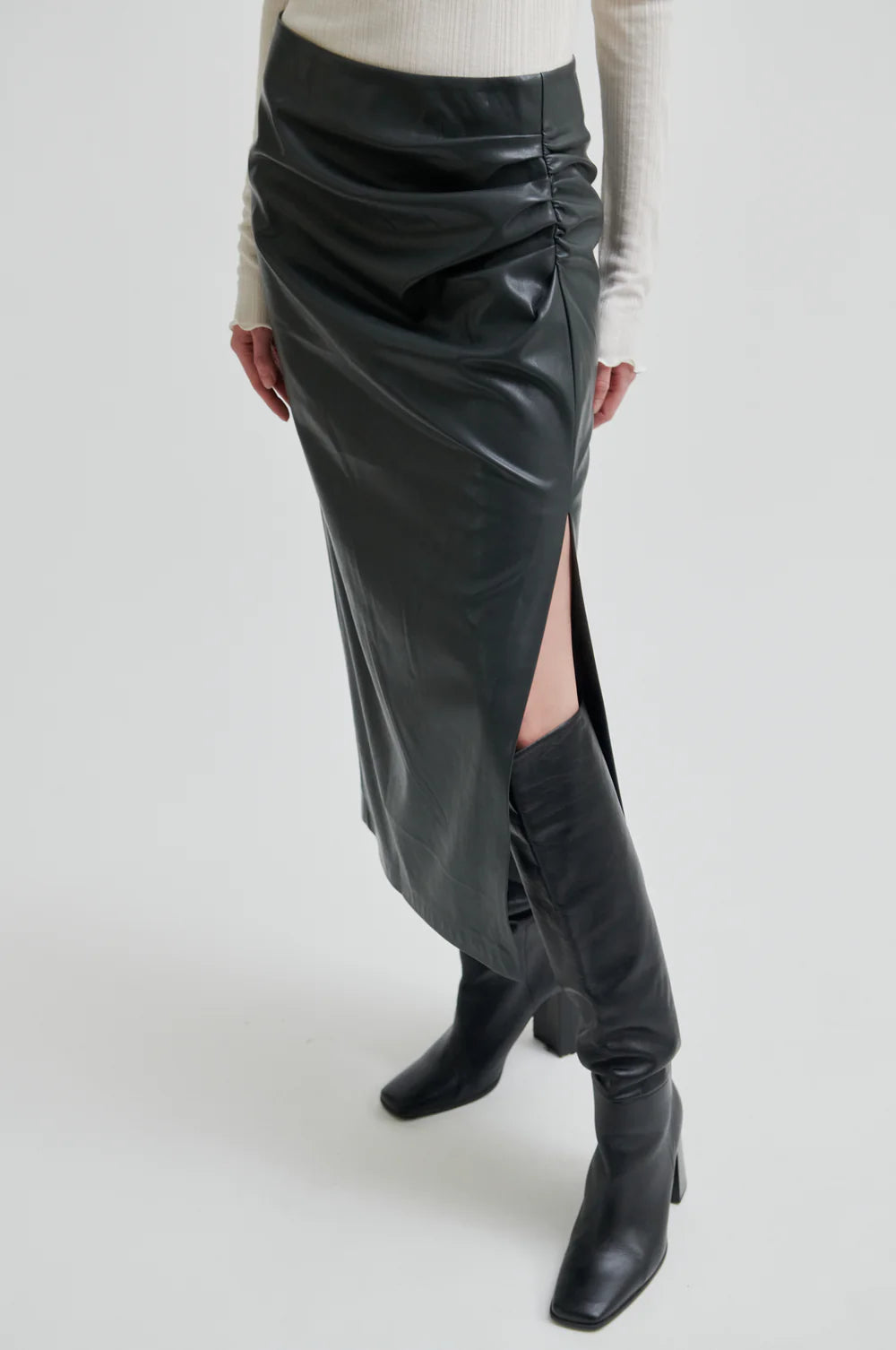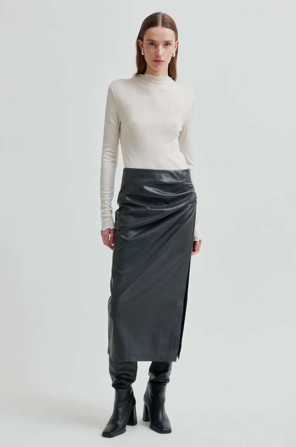Mock Wrap Skirt with Placement Print in Black/Sand