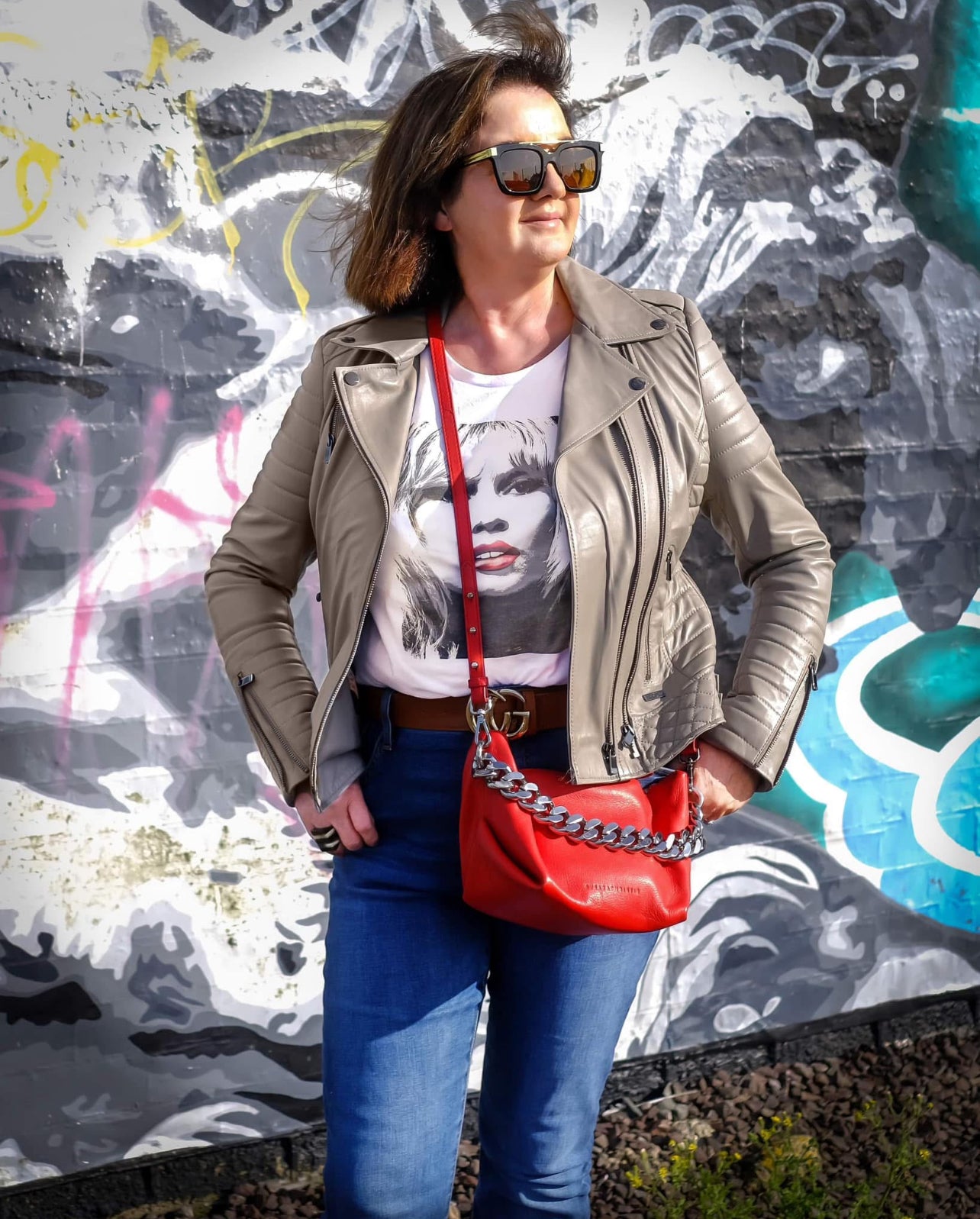 High Waist Straight Trouser in Dark Taupe/ Grey Melange